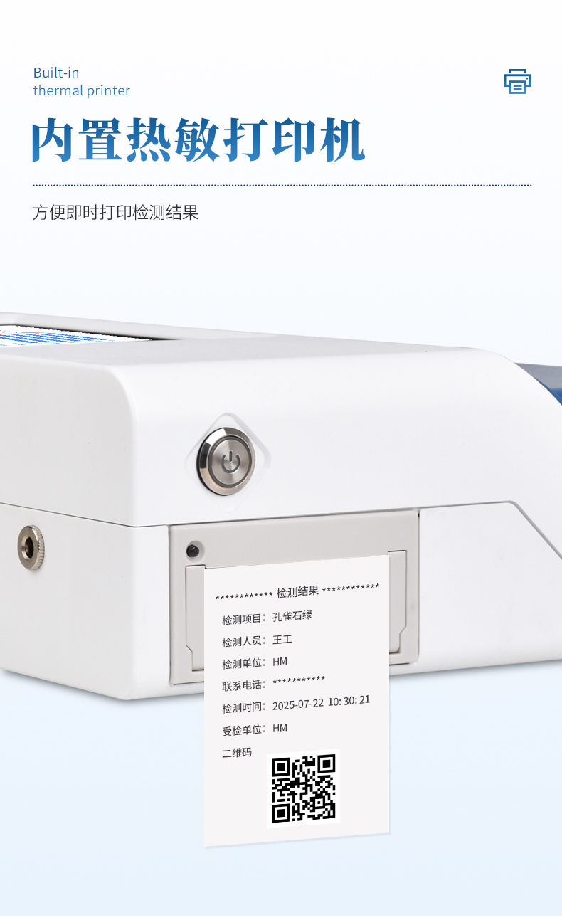 5、內(nèi)置熱敏打印機(jī),檢測完成即可現(xiàn)場打印標(biāo)準(zhǔn)報(bào)告,提升工作效率。