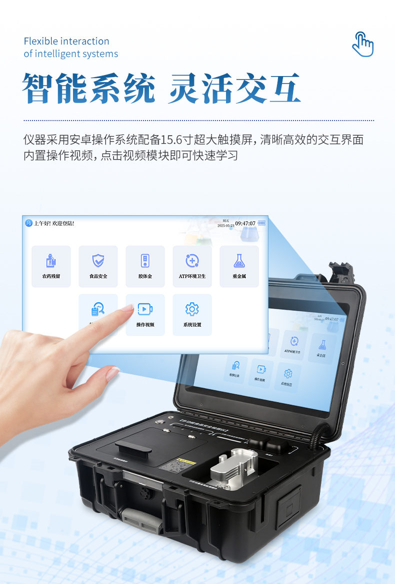 本儀器操作簡便、體積小、集成多種檢測方法,可快速檢測200多項(xiàng)目,包含非食用化學(xué)物質(zhì)、濫用食品添加劑、農(nóng)藥殘留、獸藥殘留、微量元素、重金屬、細(xì)菌微生物、病害肉、營養(yǎng)強(qiáng)化劑、抗生素類殘留、激素類殘留、真菌毒素類殘留、化學(xué)類殘留、等現(xiàn)場的定性定量檢測。