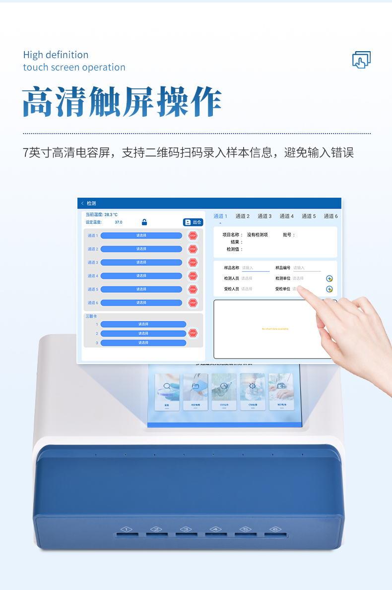 13、內(nèi)置質(zhì)控功能,設備和檢測卡均可自檢;內(nèi)置插卡判斷功能,無卡不能檢測